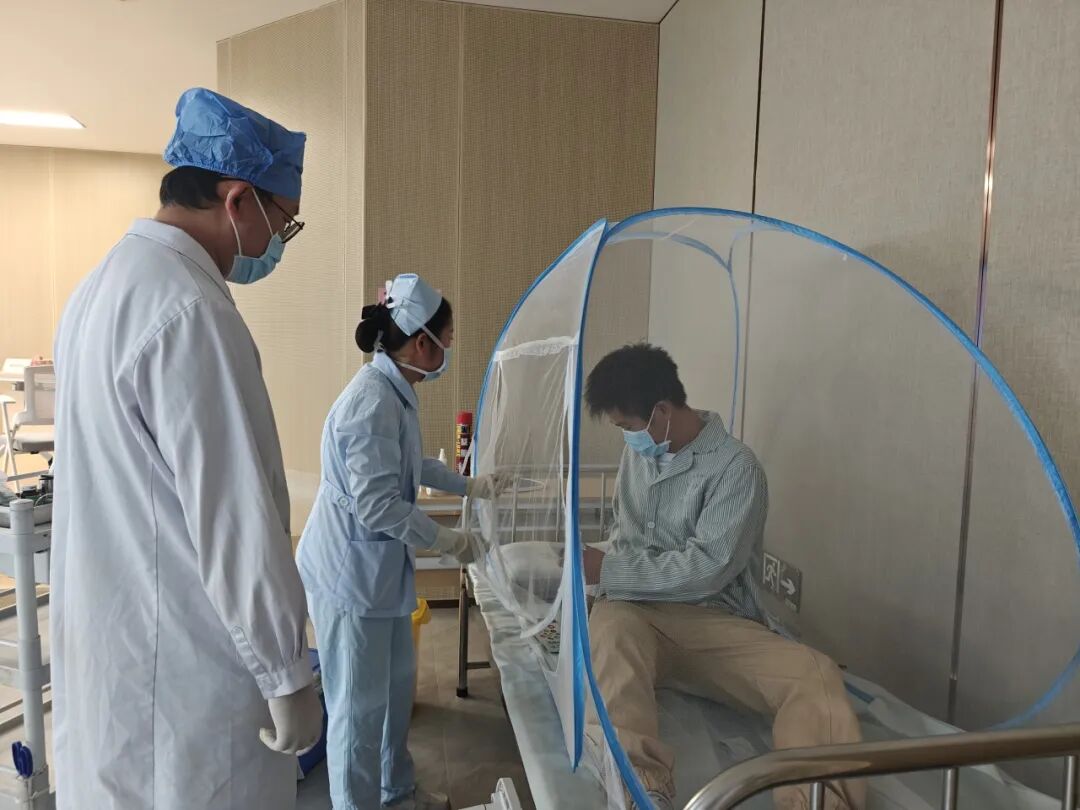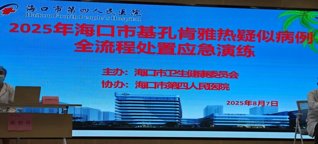 2025年8月7日下午海口市卫生健康委员会联合我院举行海口市基孔肯雅热疑似病例全流程处置应急演练。此次演练由海口市第四人民医院联办。