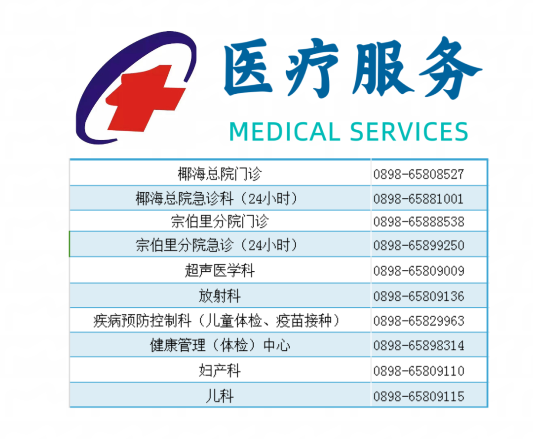 3.如有就诊疑问,可拨打24小时热线咨询电话,椰海总院:65808527,宗伯里分院:65888538;