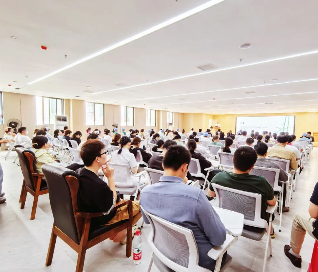 王家辉主任的培训主题是《中西医协同:慢性病防治的创新路径与核心优势》,他结合多年临床经验与政策导向,将培训内容聚焦于中西医协同的核心场景与实操要点:既讲解了慢性病防控、复杂疾病及共病管理的中西医结合思路,也针对感染性疾病中西医协同防控分享具体方案;从诊疗手段的诊断层面互补,到未病管理和健康管理协同,再到康复调理与功能恢复协同,覆盖疾病诊疗全周期;同时还提及医疗成本优化与控制的实践路径,解读了中西医协同发展的国家战略与政策保障体系,并结合会诊制度、中西医联合查房等医院日常工作机制,明确如何促进中西医人员在临床实践中深度协作。内容紧密对接我院医疗工作实际,讲解务实易懂,帮助在场人员系统理解中西医协同的应用价值与操作方法。
